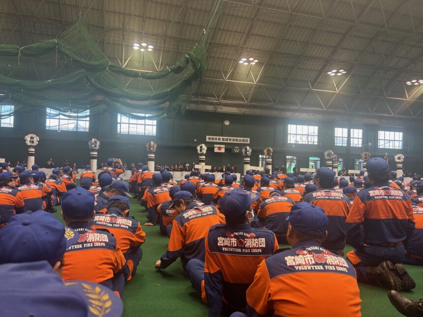 毎年恒例の宮崎市消防団の出初式が開催されました。今年は市役所近くの河川敷で不発弾が発見された事もあり、生目の杜のはんぴドームで式典のみでした。今年も自分の所属する第7部が放水を担当することになっていたので残念です。