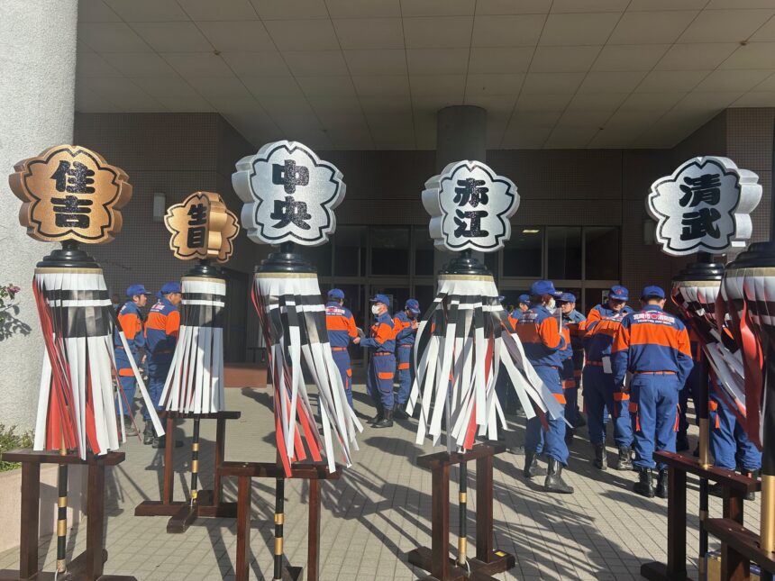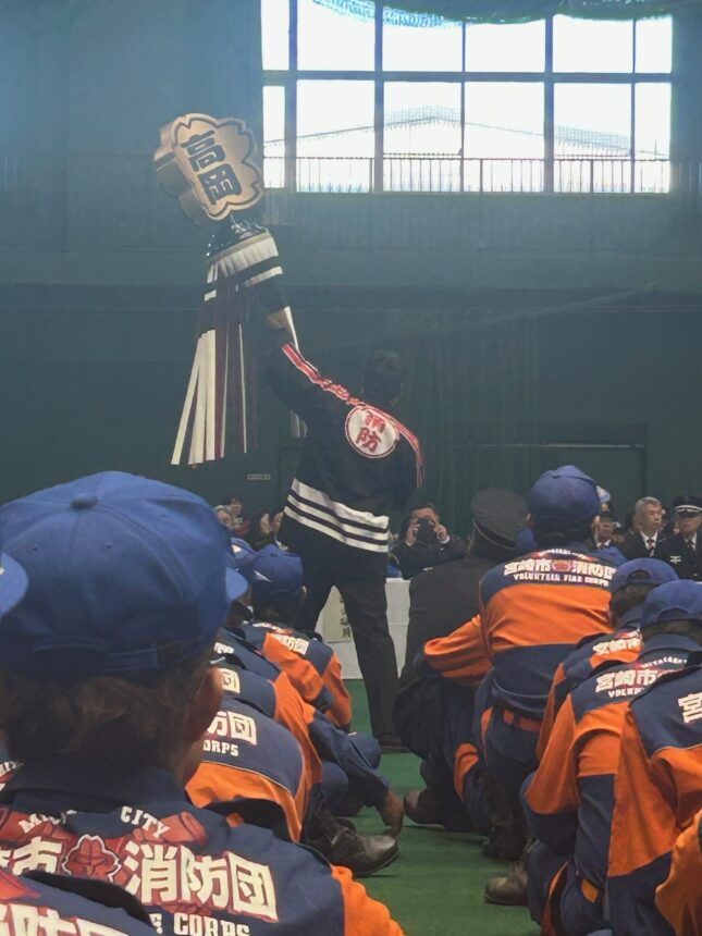しかしこの日は寒風ふきすさぶ中、ドーム内での消防出初式。寒さに震える事もなく、ぬくぬくと式典に参加。通常なら早朝5:30に詰所集合、6:30に河川敷集合、7:00にリハーサル、8:00に本番の流れ。コレはコレで良かったかもΣ(ノ≧︎ڡ≦︎)。