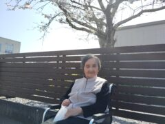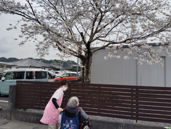 職場の駐車場に綺麗な桜が咲いてましたので、利用者様と観に行きました!