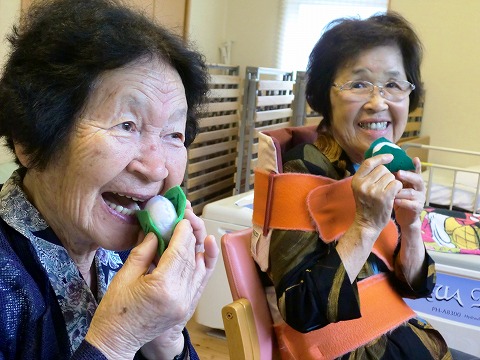 裁縫がこんなにも出来るならと、次に作ったのは〝柏餅〝です。 これはデイケアのN君に借りた本に載っておりフェルトを使って作りました。 初めは見本として自分で作ってみましたが、自分でもなかなかの出来で、利用者さんに見せると「あんたが作ったと?」と驚かれる程です。 利用者さんは1人2個ずつ作られました。