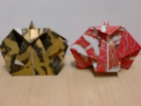 今回は箸袋の代わりに箸置きを折り紙で作りました。黒色の折り紙がお内裏様、赤色の折り紙がお雛様です。