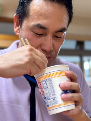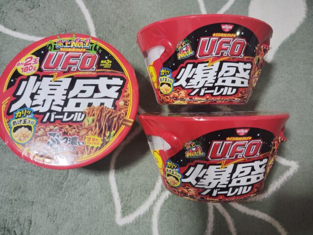 1日目→大盛焼きそば 2日目→カップヌードル+ビッグプリン
