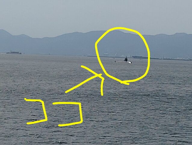 海を眺めていると、なんと「潜水艦」を発見!!( ゚Д゚)