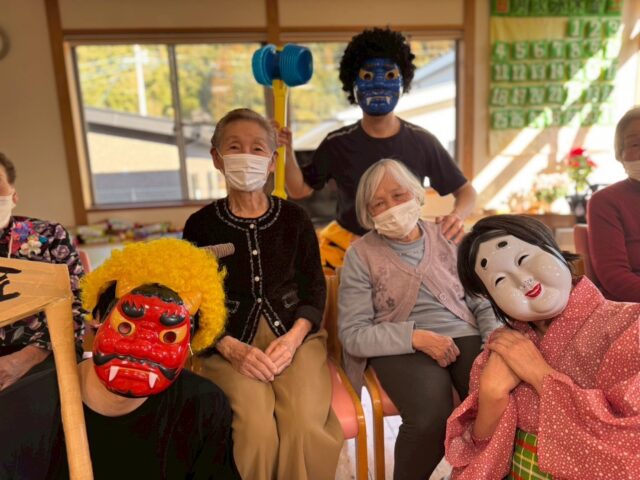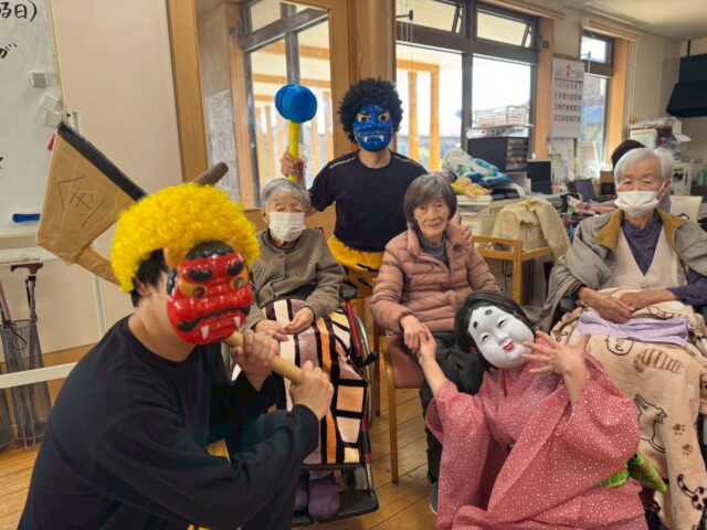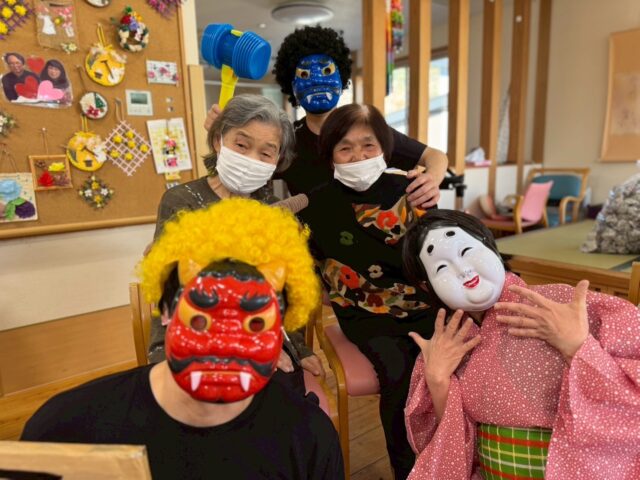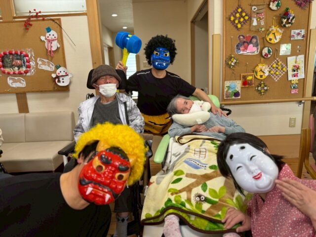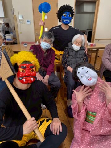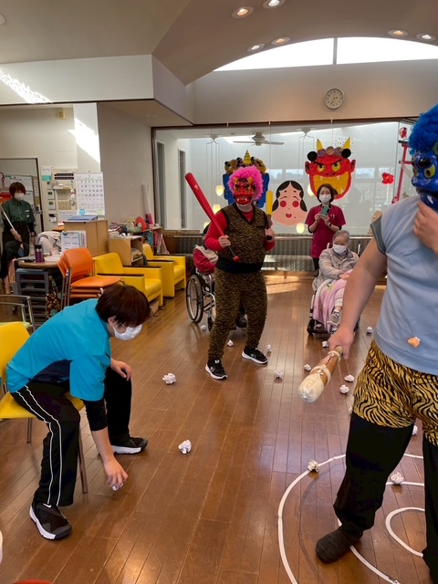 2月3日は節分行事で、豆まきを行いました。鬼が3体!!迫力のある鬼でした~(笑)