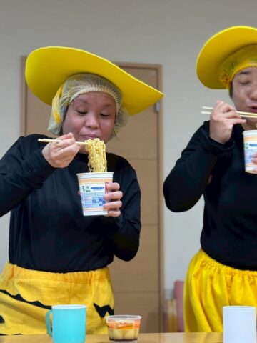 炭坑節はお月さま🌕から手作りして衣装も考え利用者様にたくさん笑って頂きたい思いでスタッフみんなで頑張りました。早食い競争は香月のスタッフさんや事務の方にもお手伝いして頂けたおかげで全員参加でき大盛況に終わりました。ちなみに1日目の優勝者は香月のスタッフさんで優勝賞品は「蒙古タンメン中本」