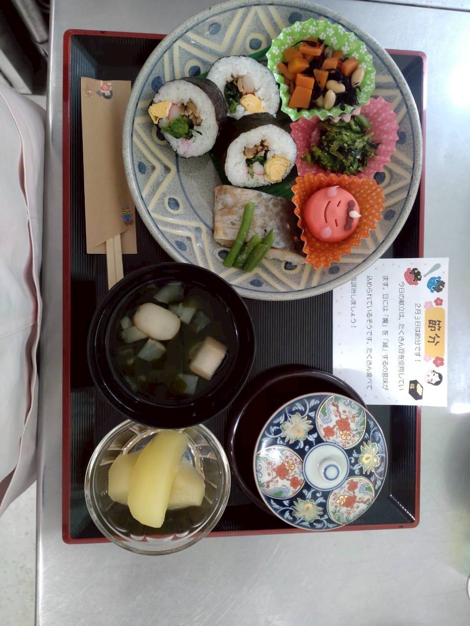 この日の昼食は節分行事食( *´艸`)恵方巻を皆さんで頂きました♬