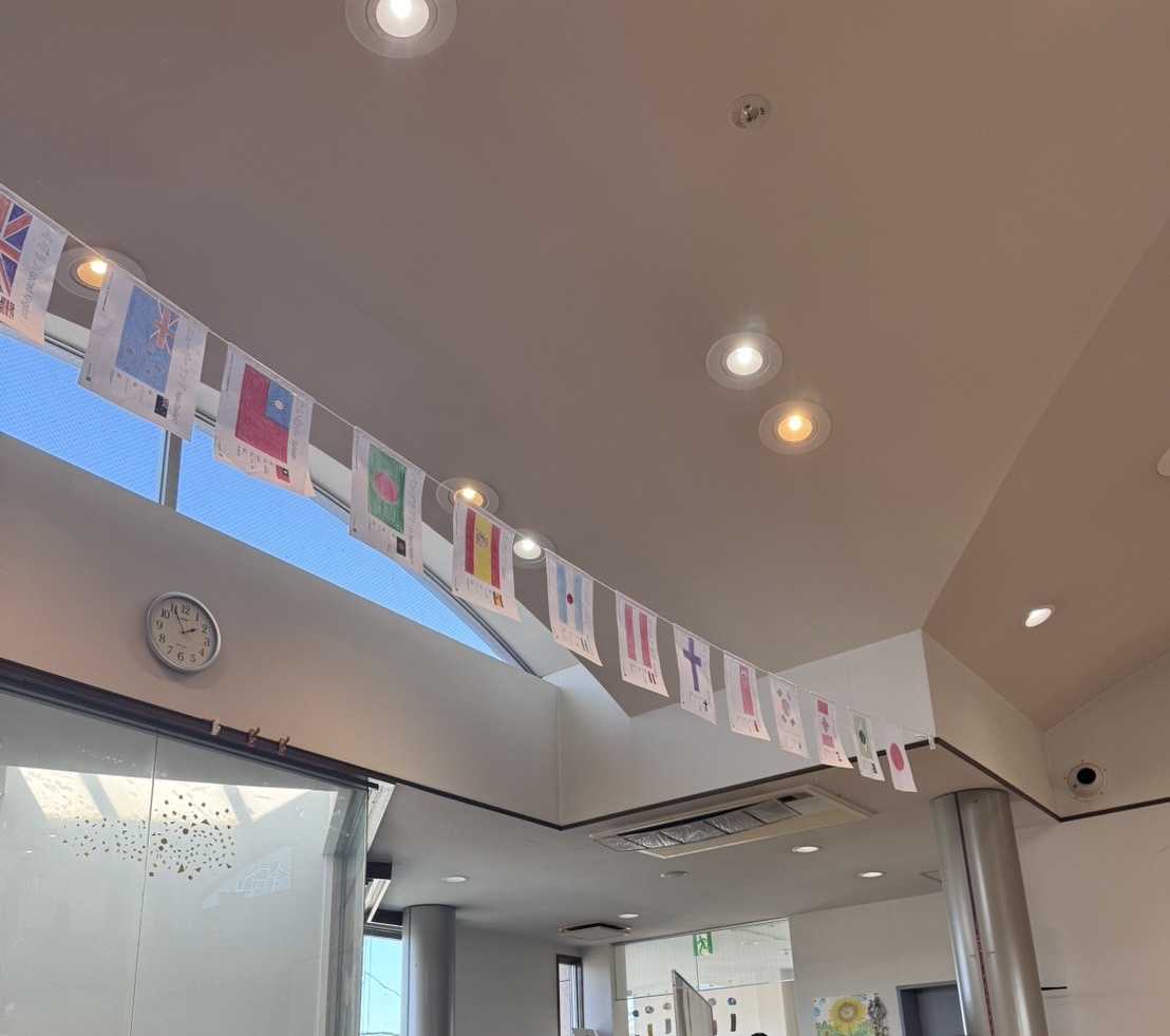 もちろん、運動会には欠かせない(今はどうかわかりませんが・・・)万国旗も飾り付けてあります。